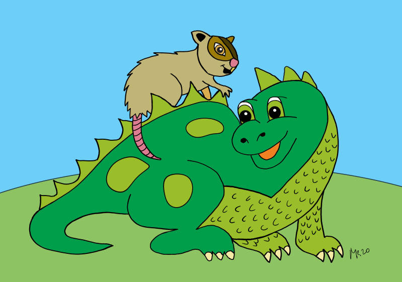 ‘Ik ben niet je mama. Ik ben Tijn,’ zei het zoogdiertje. ‘Ik denk dat jij een dinosaurus bent, want je lijkt op de grote dieren, die hier in de vallei rondliepen.’